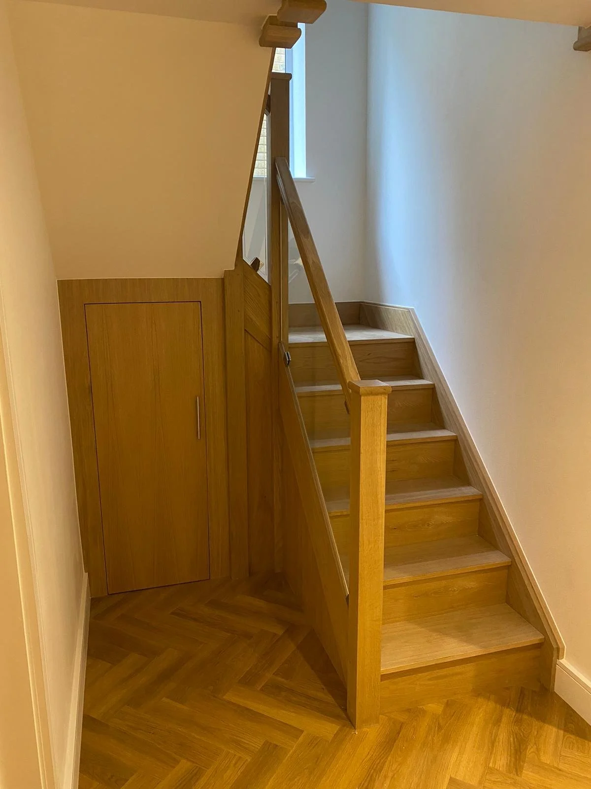 Oak staircase with glass balustrade