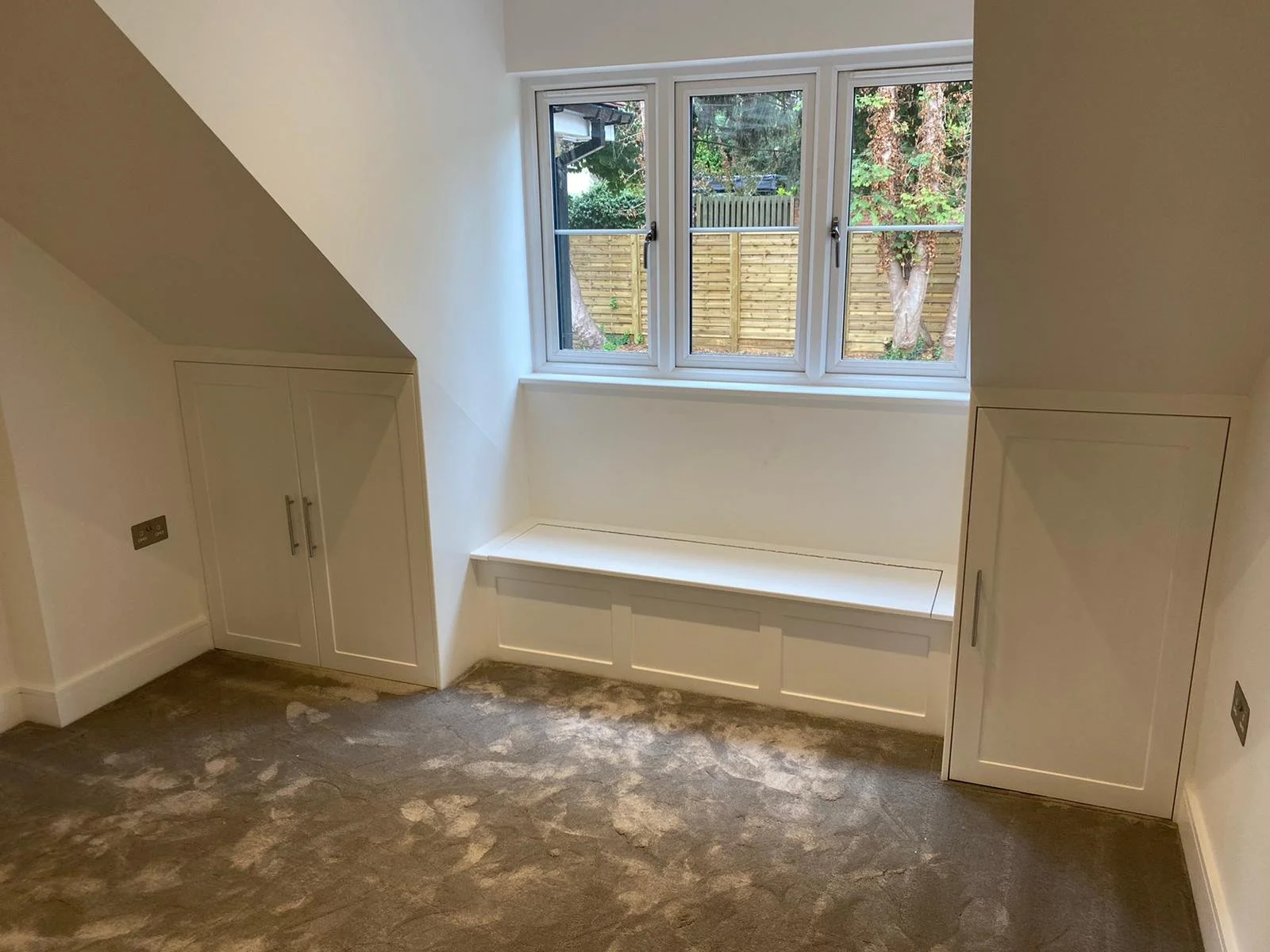 Dormer rooms often leave awkward spaces, building bespoke cabinets to suit the space maximised the use of it.